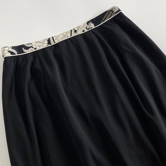 60k3 LEONARD レオナール カンカン素材 フラワープリント スカート 72cm ブラック ボトムス 日本製 SKIRT