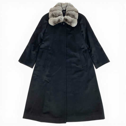 30a9 チンチラファー付き カシミヤロングコート サイズF ブラック 最高級毛皮 Chinchilla Fur Cashmere Coatt18r