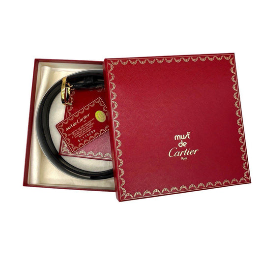 《美品》 must de Cartier マスト ドゥ カルティエ パンテール ゴールド金具 レザーベルト S ブラック Leather イタリア製 箱有