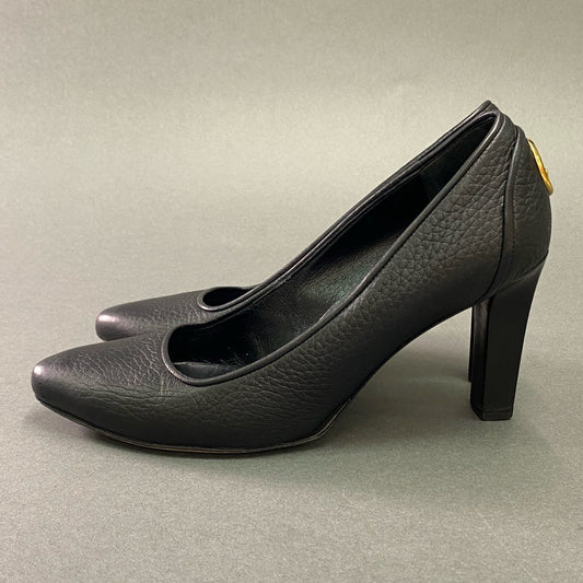 4l19 4 GUCCI グッチ ゴールドGGロゴ レザーパンプス 36 1/2 ブラック Leather イタリア製 シューズ