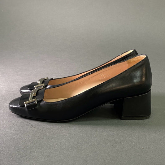 5l20 TOD'S トッズ ダブルT レザーパンプス 35 1/2 ブラック Leather イタリア製 シューズ 靴