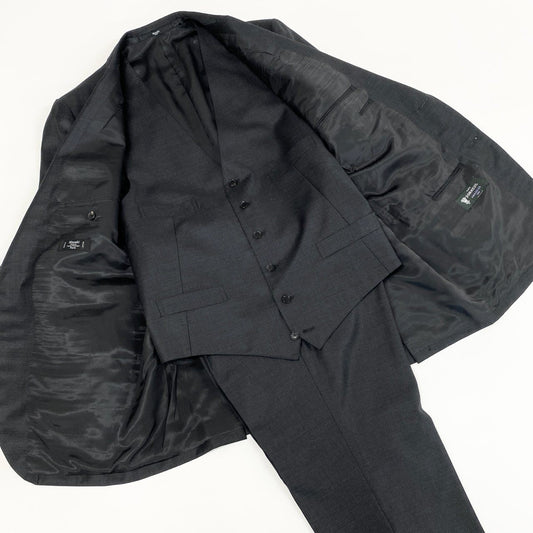 2l14 《美品》 Masaki Paris マサキ パリ 3ピース スーツ セットアップ L相当 ブラック フランス製 DORMEUIL AMADEUS 365