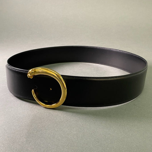 l12 《美品》 Cartier カルティエ パンテール ゴールド金具 レザー 太ベルト ブラック Leather 小物