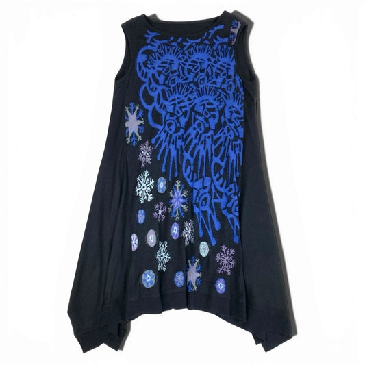 52b27 TOKUKO 1er VOL トクコプルミエヴォル ノースリーブワンピース ニットワンピース ロング 雪の結晶 レディース 女性服 サイズ9 ブラック ウール100%u02t