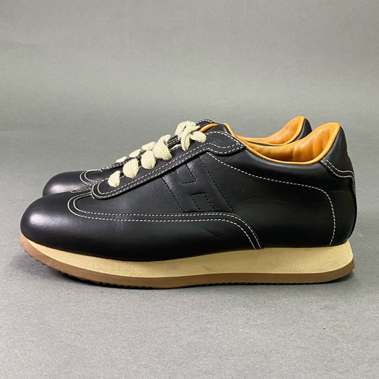 3k12 HERMES エルメス クイック レザー ローカットスニーカー 37 約22cm ブラック Leather Sneakers イタリア製 Hロゴ