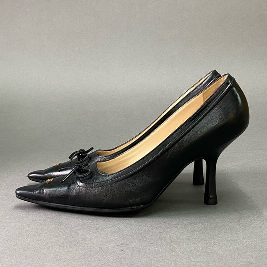 6k12 CHANEL シャネル ココマーク リボンパンプス 36 約23cm ブラック レザー シューズ イタリア製 ラグジュアリー