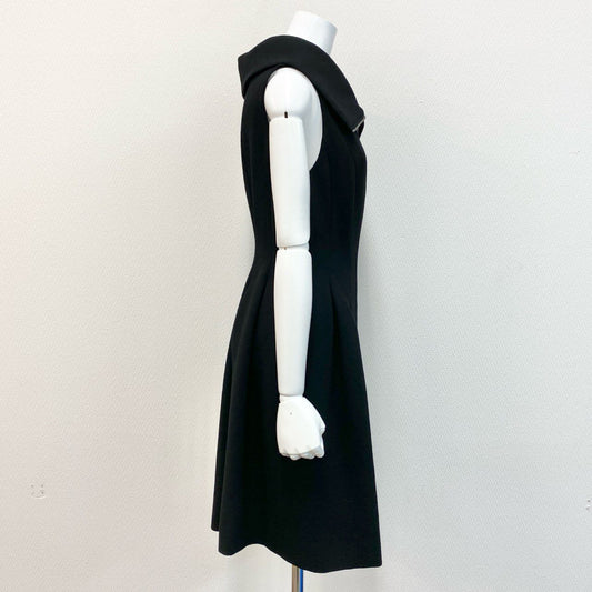 20k19 FOXEY フォクシー ジップウィング ブラックウール ノースリーブワンピース 秋冬ドレスワンピース サイズ38 ブラック レディース 女性用