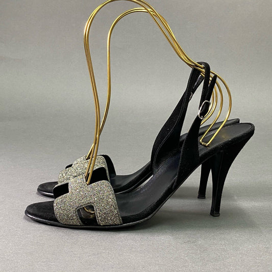 1k12 HERMES エルメス ジョイ ラインストーン装飾 ヒールサンダル ストラップサンダル サイズ41 ブラック スウェード パンプス レディース 女性用