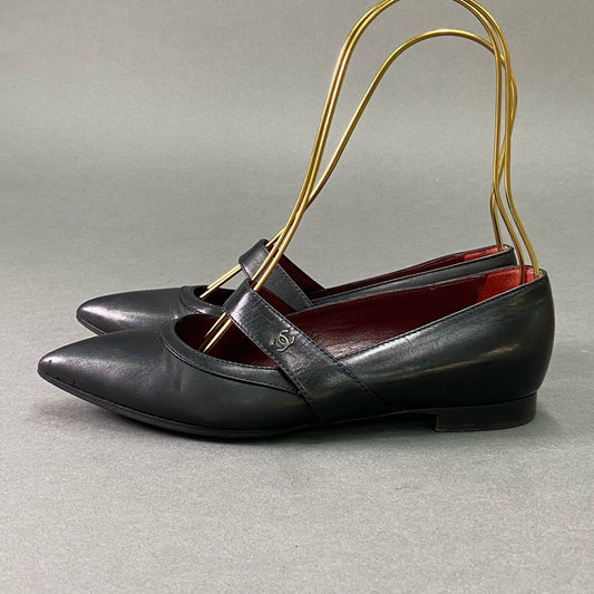 1k12 CHANEL シャネル ココマーク ストラップパンプス 35 約22.5cm ブラック レザー Leather シューズ イタリア製