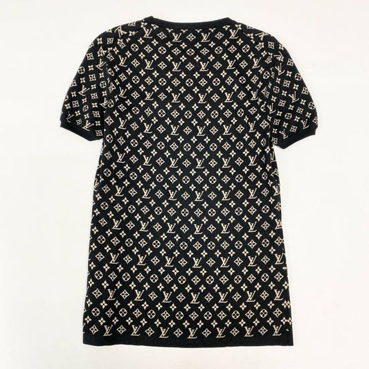 45k18 《美品》 LOUIS VUITTON ルイヴィトン モノグラム 半袖ニット ジャガードニットトップ カットソー イタリア製 ロゴプレート 1A93HY L ブラック