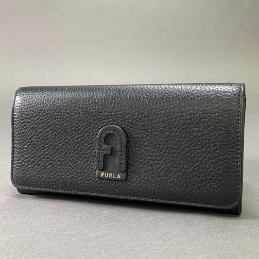 k12 《美品》 FURLA フルラ DAFNE XL ダフネ バイフォールド アーチロゴ ウォレット 長財布 WP00243 ブラック レザー