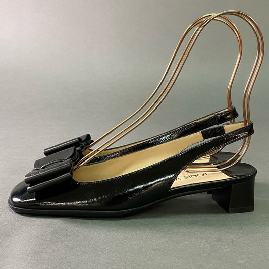 9j28 《美品》 LOUIS VUITTON ルイヴィトン LVロゴ リボン バックストラップ パンプス 36 ブラック レザー スクエアトゥ サンダル シューズ イタリア製