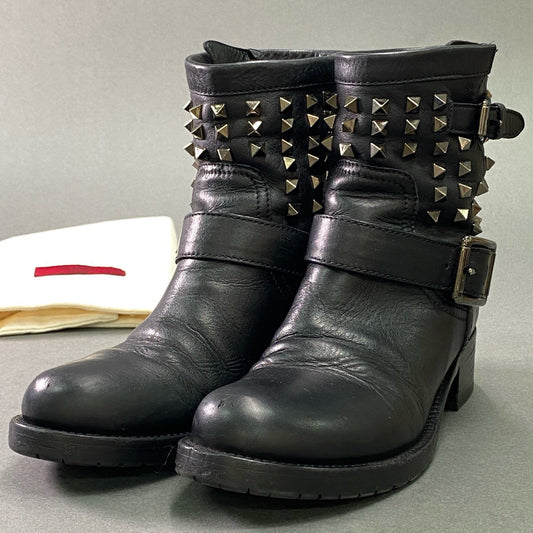 1k5 VALENTINO GARAVANI NOIR ヴァレンティノ ガラヴァーニ ノワール ロックスタッズ レザーショートブーツ 39 ブラック leather シューズ イタリア製