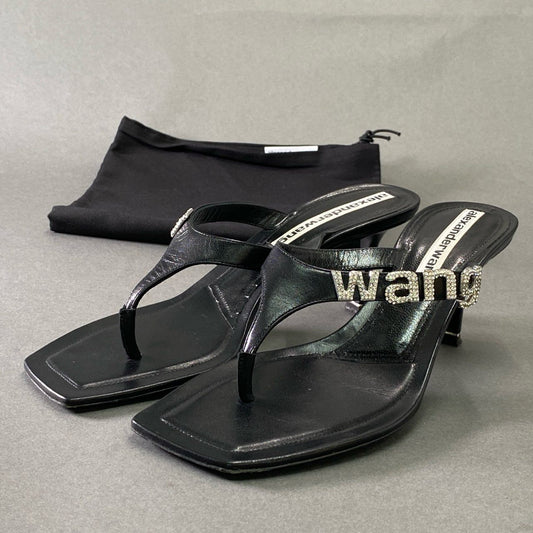 5j10 alexander wang アレキサンダーワン ラインストーンロゴ ヒール トングサンダル 39 ブラック レザー シューズ イタリア製