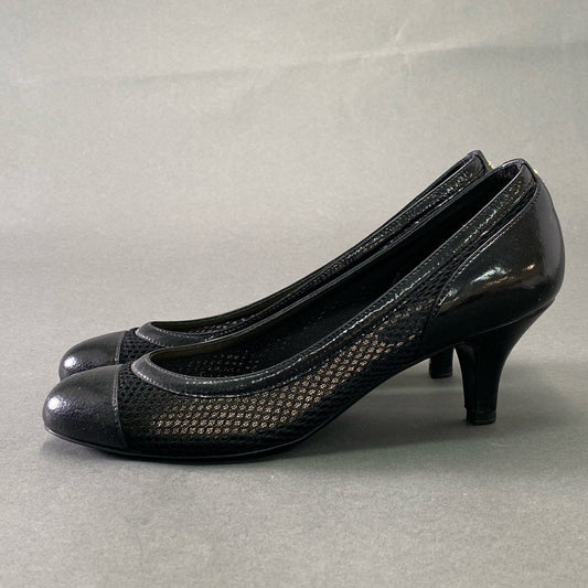 4j10 CHANEL シャネル CC ココマーク付き メッシュパンプス 37 ブラック メッシュ × パテントレザー シューズ イタリア製