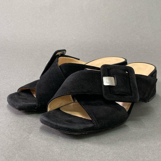 6j11 sergio rossi セルジオロッシ MIA ミア スエード ミュール サンダル 37 ブラック スウェードレザー バックル シューズ イタリア製