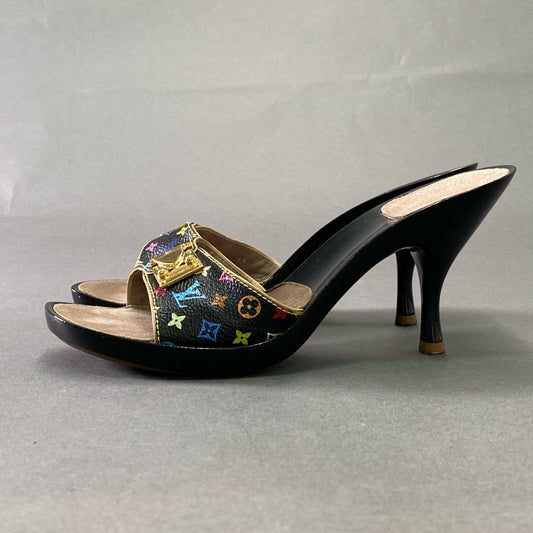 5j10 LOUIS VUITTON ルイヴィトン モノグラム マルチカラー ミュール サンダル 37 ブラック レザー シューズ フランス製
