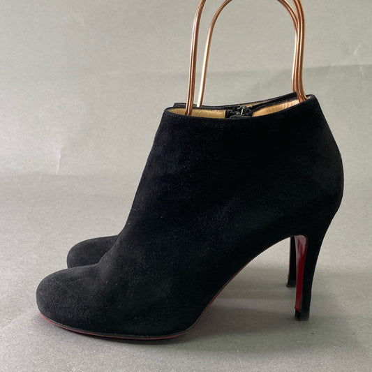 2j11 Christian Louboutin クリスチャン ルブタン ブーティ ショートブーツ 34 ブラック スエード レザー ヒール サイドジップ イタリア製