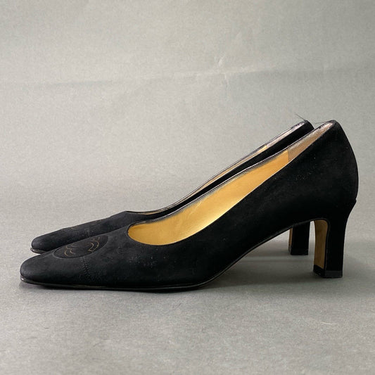 6j11 CHANEL シャネル CCロゴ ココマーク スエードパンプス 36 ブラック スウェードレザー スクエアトゥ シューズ イタリア製
