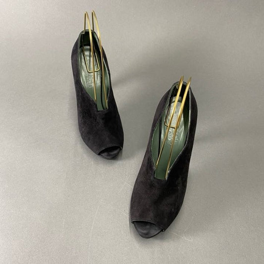 2h15 HERMES エルメス スエード オープントゥ ヒールパンプス 38 ブラック スウェード シューズ サンダル イタリア製