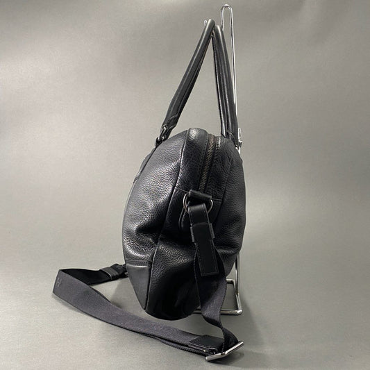 Ah15 HUGO BOSS ヒューゴボス 2way ショルダーバッグ/ハンドバッグ ビジネスバッグ 書類かばん ロゴ ブラック オールレザー メンズ 男性用