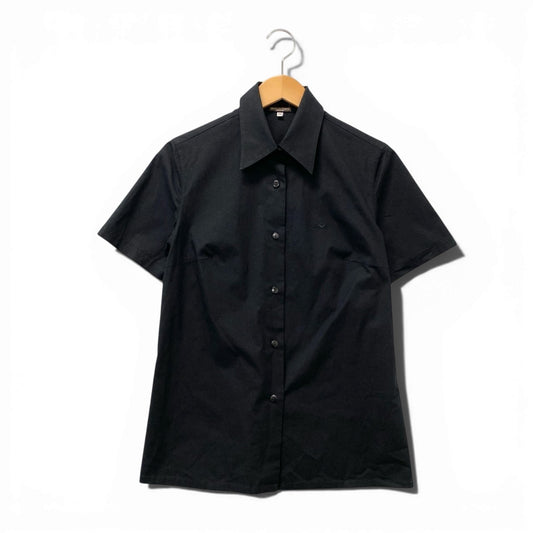 6b17 【美品】BOTTEGA VENETA ボッテガヴェネタ 半袖シャツ ワイシャツ シャツブラウス ロゴ刺繍 44サイズ ブラック レディース 女性用u02t