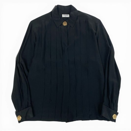 Cb15 Vintage CHANEL シャネル ココマークボタン ドレスシャツ 長袖ブラウス トップス ブラック レディースta1