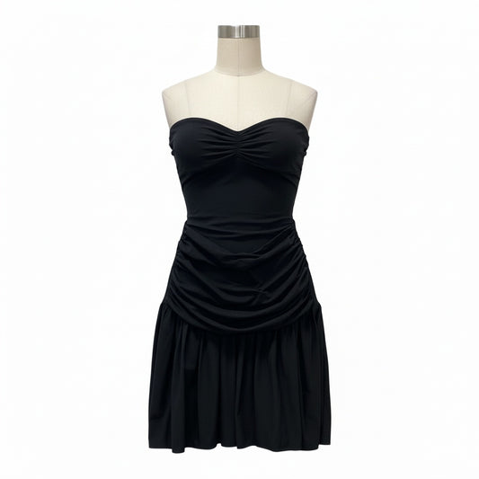 44b17 BALENCIAGA バレンシアガ ベアトップミニワンピース ストレッチギャザーワンピース 36サイズ ブラック レディース 女性用u02t