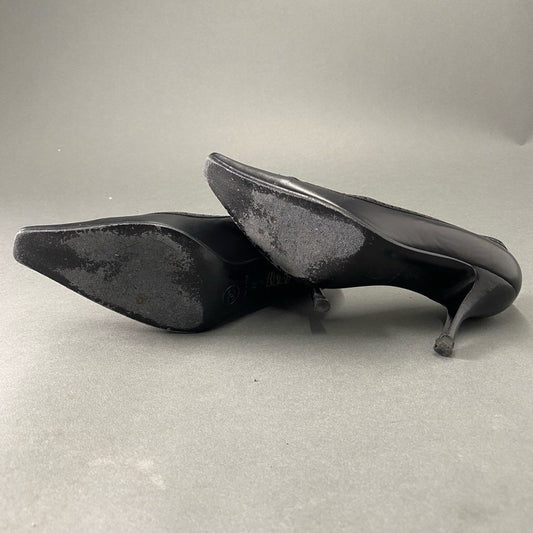 2b24 イタリア製 CHANEL シャネル ヒールパンプス ハイヒール スクエアトゥ 35 ブラック レザー レディース 女性用