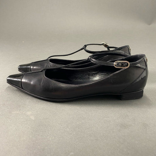 2b24 イタリア製 CHANEL シャネル フラットパンプス フラットシューズ スクエアトゥ ストラップ 35 1/2 ブラック レザー レディース 靴 女性用
