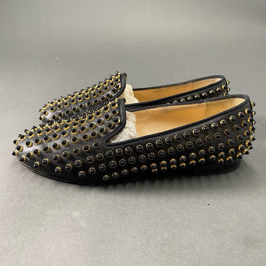 2b24 イタリア製 Christian Louboutin クリスチャンルブタン フラットパンプス フラットシューズ スタッズ 36 1/2 ブラック レザー レディース 女性用