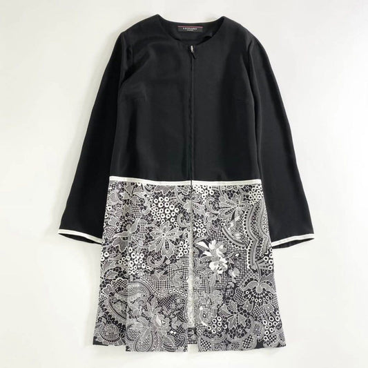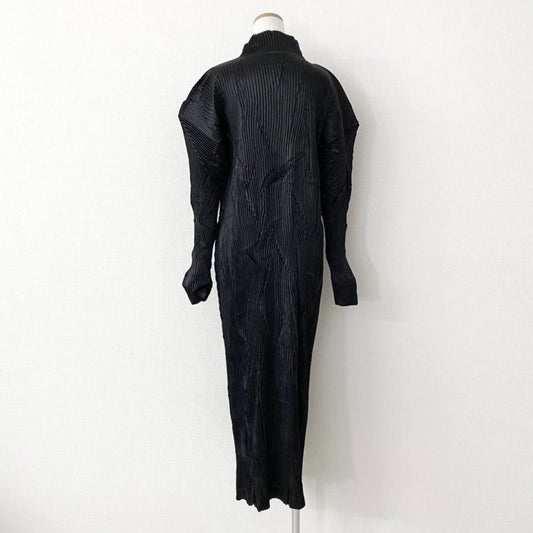 63j8 《美品》 ISSEY MIYAKE イッセイミヤケ プリーツロングコート M ブラック PLEATS PLEASE スプリングコート 日本製