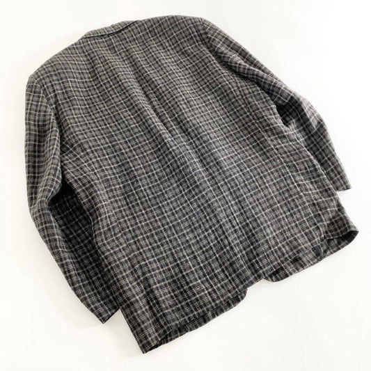 52i22 COMME des GARCONS HOMME コムデギャルソンオム 90s リネン チェックテーラードジャケット Sサイズ ブラック メンズ ブレザー 羽織
