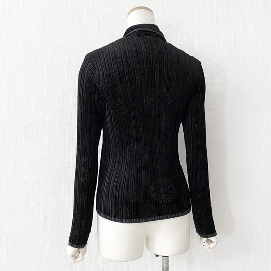 17j8 《美品》 ISSEY MIYAKE FETE イッセイミヤケフェット ベロアプリーツジャケット サイズ2 ブラック レディース ブレザー PLEATS 羽織
