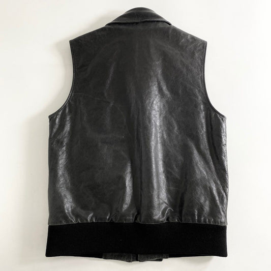37b4 Maison Margiela メゾンマルジェラ ジップアップレザーベスト 46 ブラック レザー イタリア製