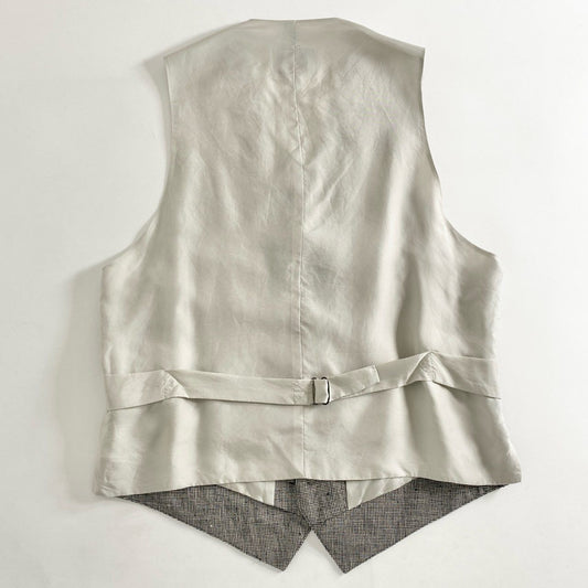 9b26 日本製 Needles ニードルズ ジレベスト リネンベスト リネン100% 1 ベージュ系 異素材切替 千鳥柄 トップス メンズ