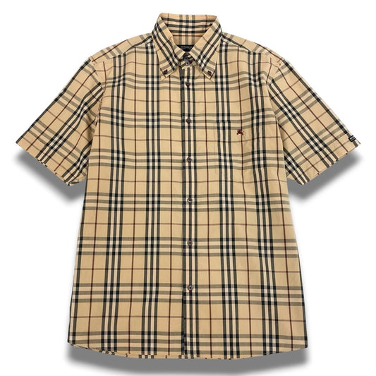 Ic2 BURBERRY BLACK LABEL バーバリーブラックレーベル 半袖シャツ トップス ノバチェック ホース刺繡 3 ベージュ系 コットン メンズu02t