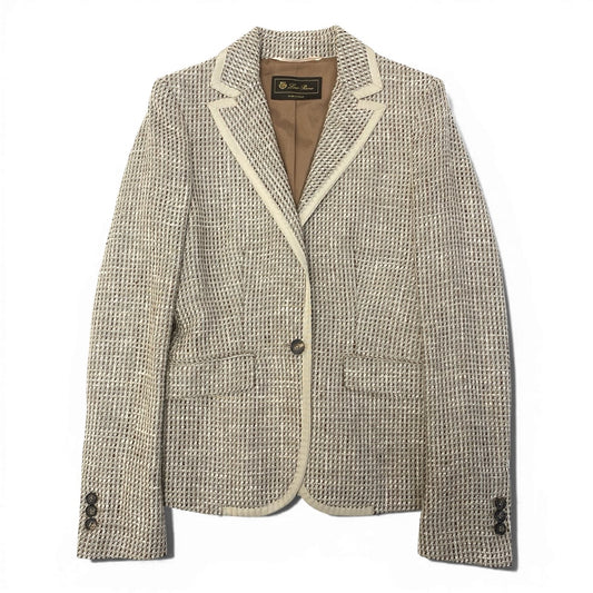 64a28 Loro Piana ロロピアーナ サマーツイードテーラードジャケット パイピング シルク混 イタリア製 38サイズ ベージュ系 レディース 女性用u02t