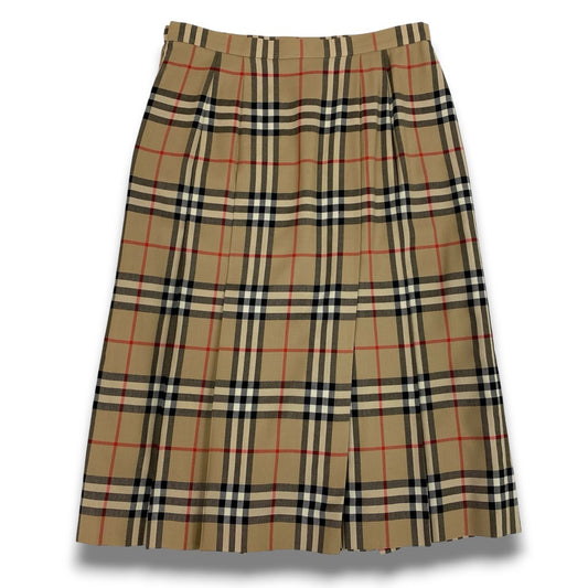 43b20 Vintage Burberrys バーバリーズ ヴィンテージ ノバチェック フレアスカート タックプリーツ 13 ベージュ系 ウール レディースu02t