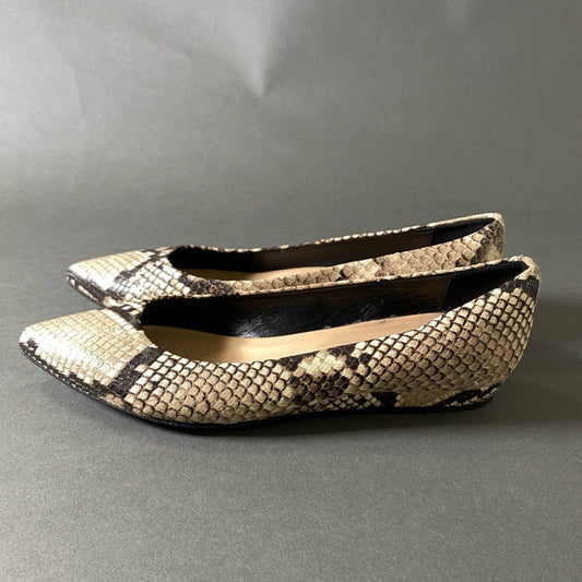 3g28 FABIO RUSCONI ファビオルスコーニ パイソン風 ポインテッド フラットシューズ パンプス サイズ37 ベージュ系 レザー レディース 女性用 靴