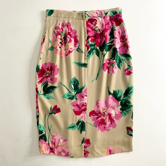 3b26 イタリア製 DOLCE & GABBANA ドルチェアンドガッバーナ ドルガバ 花柄スカート 膝丈スカート バックジップ 38 ベージュ系 シルク ボトムス レディース