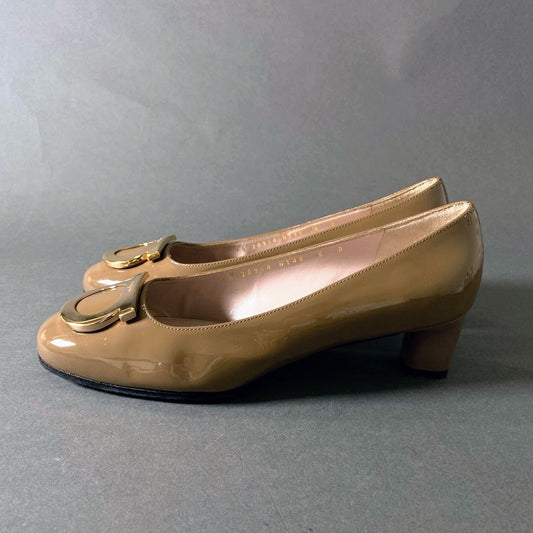 3g15 Salvatore Ferragamo サルヴァトーレフェラガモ ガンチーニ ゴールド金具 パンプス 6サイズD ベージュ パテントレザー レディース