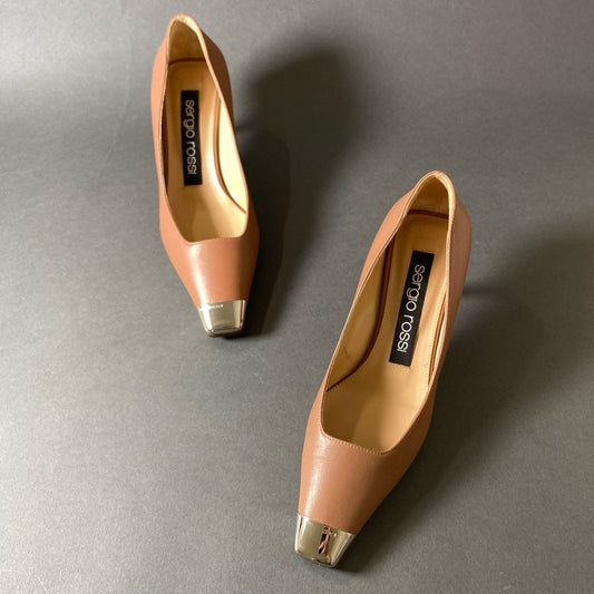 4g28 【未使用】sergio rossi セルジオロッシ SR TWENTY METAL 060 レザーパンプス サイズ36 ベージュ レザー レディース 女性用 靴 シューズ