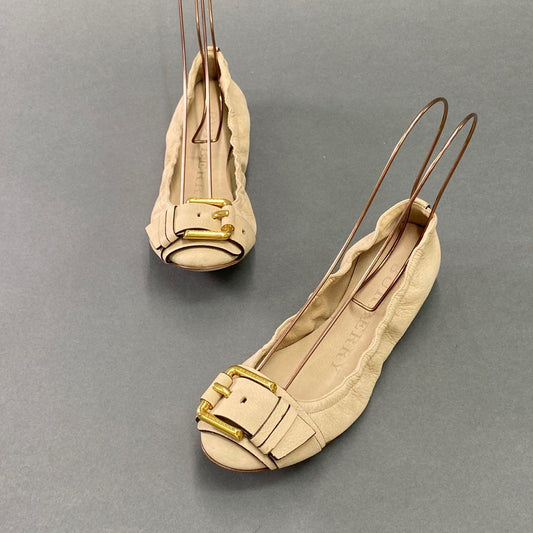 7a10 《極美品》 BURBERRY バーバリー ゴールドピンバックル レザーバレエシューズ 37 ベージュ Leather イタリア製 フラット
