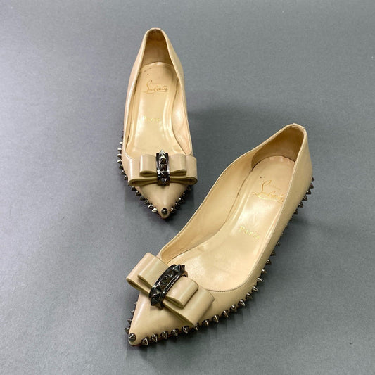 2k11 Christian Louboutin クリスチャン ルブタン ロックスタッズ リボンパンプス 35 1/2 ベージュ レザー シューズ イタリア製
