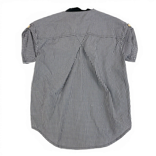 27a23 LOUIS VUITTON ルイヴィトン ゴールドボタン ギンガムチェック ボウタイブラウス 半袖ブラウス 実寸L相当 レディース トップスk02i