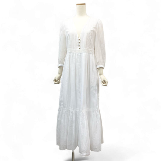 Ek23 CELINE セリーヌ コットンツイル マカダムボタン マキシドレス MAXI DRESS ワンピース サイズ36 ホワイト レディースk02i