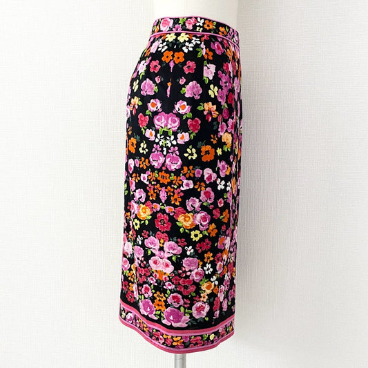5e11 《美品》 LEONARD レオナール 美しい花柄プリント 花柄スカート タイトスカート 膝丈スカート サイズ67 マルチカラー コットン100% レディース 日本製