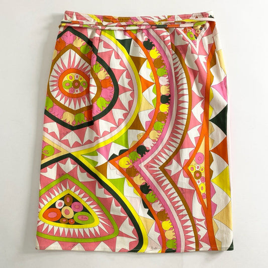 9b26 イタリア製 EMILIO PUCCI エミリオプッチ ラップスカート 膝丈スカート 38 マルチカラー 総柄 ボトムス レディース