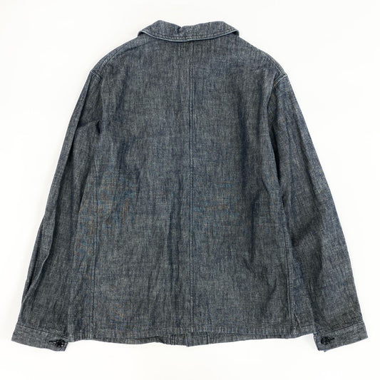 43f25 【美品】BONCOURA ボンクラ フレンチカバーオール コットンリネン ヘビーオンスシャンブレー サイズ36 ネイビー メンズ ワークジャケット
